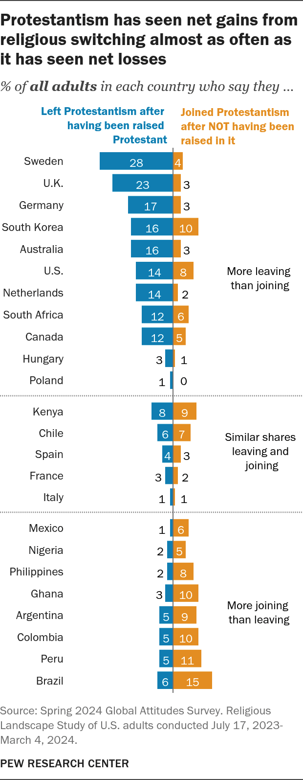 The question in places like Brazil and Ghana is whether those gains will remain in place in years to come. Or will people who switch to Protestantism eventually leave that religion for the same reason so many people are leaving Catholicism? It’s too early to tell.