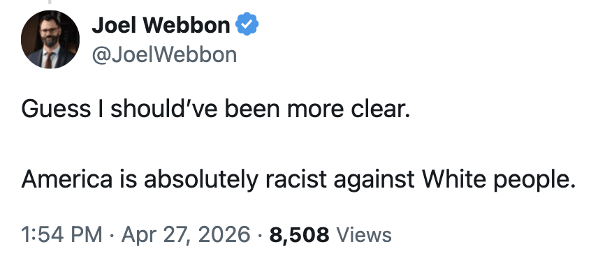 If this were one fringe guy with no audience, maybe it would be forgettable, but he’s not. He’s part of a white conservative Christian movement that has spent years minimizing systemic racism, rewriting American history, and reframing civil rights advocacy as the real threat. They’ve already been successful getting their bigotry enacted in red states and it’s widespread in pockets of social media. That’s why it must be countered at every turn.